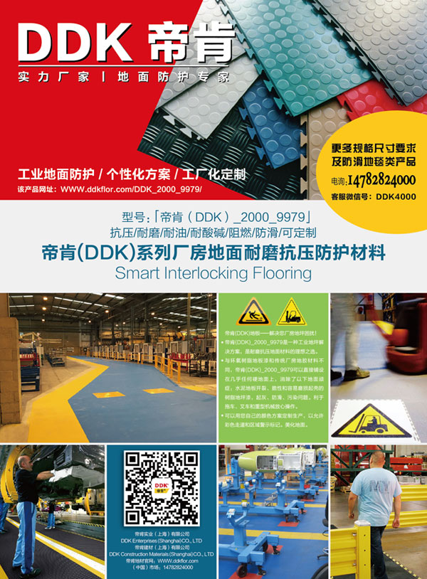 選擇大型車間塑膠地板需首先考慮地板的耐受性,看耐磨程度是否能夠承受車間機(jī)器和叉車的重壓,看耐腐蝕程度是否能夠抵御車間油劑的污染。帝肯(DDK)pvc車間塑膠地板不但囊括了以上功能,還具有連鎖式拼接設(shè)計(jì)邊緣。帝肯(DDK)廠房地板材料防滑,耐磨,它的高浮圓點(diǎn)表層能有效增大摩擦系數(shù)。